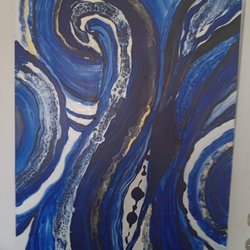 Iögonfallande och färgglatt konstverk med fina effekter och struktur i Acryl färg i teknik pouringart 20 x 20 cm