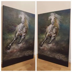 Målning med abstrakta former och starka färger. Motivet inkluderar ansiktsliknande drag och geometriska mönster. Färgpaletten består av gult, rött, blått, grönt och svart.