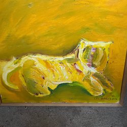 En vacker målning som föreställer en byggnad med ett torn och omgiven av växter. Konstverket är signerat och daterat 1969.E . Blomström