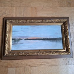 En tavla med motiv av älgar i skogsmiljö. Signerad av konstnären, C.S 1939 Cop