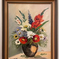 En vacker målning med blommor i en vas. Signerad av konstnären.