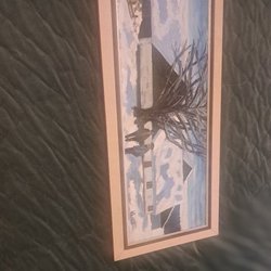 En vacker målning som föreställer ett hus vid vattnet. Signaturen finns nere i högra hörnet. 47x58cm