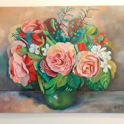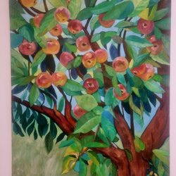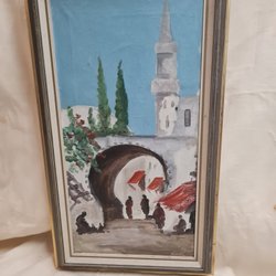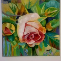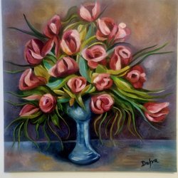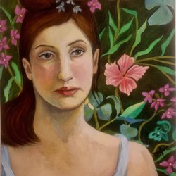 En vacker tavla som föreställer en kvinna med pärlörhänge. En parafras. Akrylmålning på duk. H 80, b 80 cm. Signerad av konstnären Camilla Dufva.