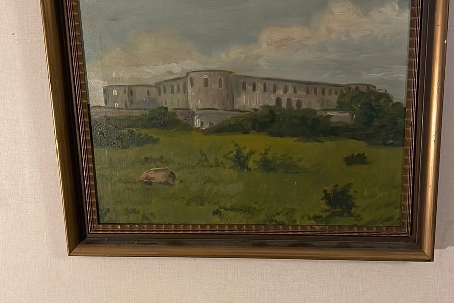 En vacker tavla med ett motiv av en byggnad i ett landskap. Den har en fin färgsättning som ger ett behagligt intryck. Har varit i familjens ägo i 80år G Johansson är konstnären