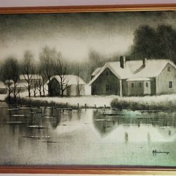 Tavlans bredd är 79 cm bred och höjd 63,5 cm inklusive tavelramen.