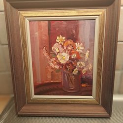 OIDENTIFIERAD KONSTNÄR. Stilleben med blommor. Olja på pannå, signerad Brusén.