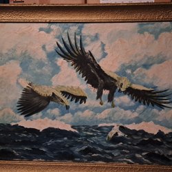 En vacker målning med ett landskapsmotiv. Denna målning fångar en fridfull scen med träd och vatten. Storlek 110*80 cm