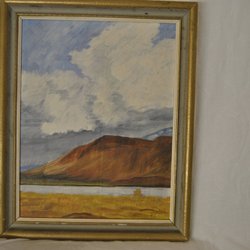 En vacker målning med ett bergslandskap. Signaturen "Per D. Ware" finns nere i vänstra hörnet.