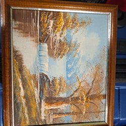 En vacker tavla med motiv av ett höstlandskap. Signerad Bolgen 83.