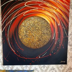 Tavla med signatur. 65x45 cm Målad med tjocka färglager.Denna tavla är köpt av konstnären Sven Carlson svendolf som målat Motiv Oviken Jämtland köpt en lördagsmorgon 1972 1973 i Gamlestan Göteborg Sven hade behov av att släcka törsten och jag köpte denna Olja tror jag