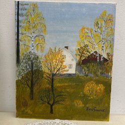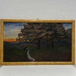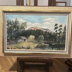 En vacker målning med ett landskapsmotiv. Signaturen finns nere i högra hörnet.