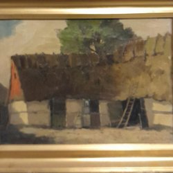 En oljemålning med motiv av ett landskap med figurer. Signerad K.E. 41.