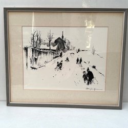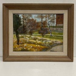 En vacker tavla med ett landskapsmotiv. Den har en signatur nere i det högra hörnet.