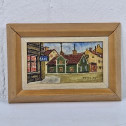 Tavla penna på papper - "Punktis fixar vi." - Signerad Rolf Wikström