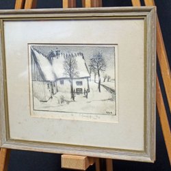 Ej examinerad ur ram - gäller inglasade verk. Ramslitage kan förekomma i varierande grad. Gäller ej akryl målningar på duk/canvas.