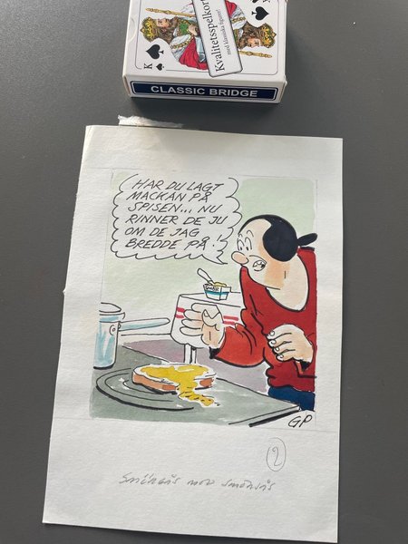 Gjord av Gunnar Persson. Färglagd för hand.