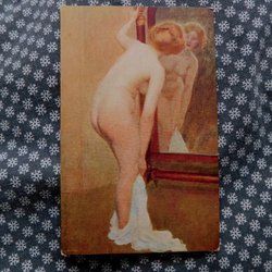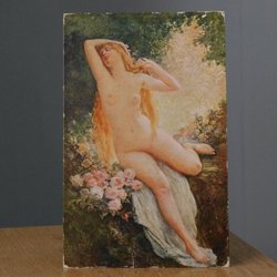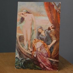 Yttermått 32*19 cm, det är en målning på något sorts väv / papp monterat på en kartong, motivet är ca 24 * 15 cm, , se bild