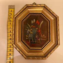 En tavla med blomstermotiv. Signerad och daterad 1963. Måttet på tavlan är 38,5×51cm
