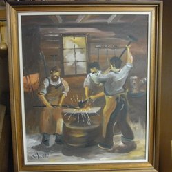 En vacker målning med blommotiv. Den har en upphängningsanordning på baksidan.
