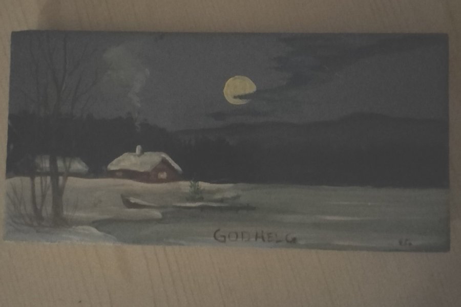 Måleri - Nattscen med stuga