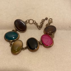 Vackert massivt armband i konjaksfärg runt armen 18.0 cm.