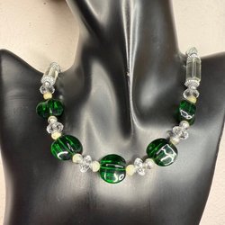 Färgstarkt och charmigt armband i tydlig Y2K-stil med handgjorda lampwork-glaspärlor i rött, grönt och gult. Mellandelar i silverfärgad metall samt dekorativa kedjelänkar ger ett livfullt uttryck. Trätt på elastisk tråd – enkelt att ta på och passar de flesta handleder.