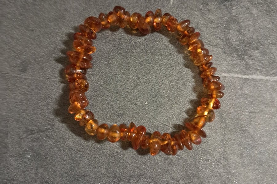 Bärnstensarmband köpt i Skåne. Passar för större barn eller smalare kvinnoarm.