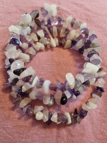 Fint armband av halvädelstenar, rosenkvarts och ametist. Se gärna övriga annonser för fler fina smycken mm