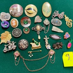 Broscher förknippas ofta med ädelstenar, guld och silver. Trenderna genom årtiondena har dock även lämnat plats för retrobroscher och färgglada plastvarianter. Broscher finns i ett närmast oändligt antal olika varianter, både trendiga och klassiska. I Traderas utbud av begagnade broscher kan man hitta broscher silver och broscher guld. I allra bästa fall finns en Chanel brosch eller två ute för auktion – en dröm för den som gillar att klä sig klassiskt stilrent. Den som vågar ta ut svängarna har ofta ännu mer att hämta. Broscher, smycken och kläder är ett intresse som delas av många. Individuella preferenser styr garderobens innehåll och dessa förändras över tid. Titta igenom utbudet av aktiva annonser så kan du upptäcka broscher som gjort sitt i en persons smyckesgarderob, men som blir huvudnumret i din. Hos Tradera har du möjlighet att hitta begagnade broscher i alla prisklasser, från slutsålda varianter från budgetkedjorna till diamantprydda varianter från välkända juvelerare.