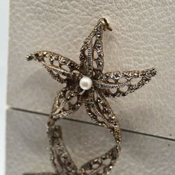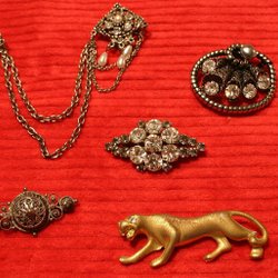 Broscher förknippas ofta med ädelstenar, guld och silver. Trenderna genom årtiondena har dock även lämnat plats för retrobroscher och färgglada plastvarianter. Broscher finns i ett närmast oändligt antal olika varianter, både trendiga och klassiska. I Traderas utbud av begagnade broscher kan man hitta broscher silver och broscher guld. I allra bästa fall finns en Chanel brosch eller två ute för auktion – en dröm för den som gillar att klä sig klassiskt stilrent. Den som vågar ta ut svängarna har ofta ännu mer att hämta. Broscher, smycken och kläder är ett intresse som delas av många. Individuella preferenser styr garderobens innehåll och dessa förändras över tid. Titta igenom utbudet av aktiva annonser så kan du upptäcka broscher som gjort sitt i en persons smyckesgarderob, men som blir huvudnumret i din. Hos Tradera har du möjlighet att hitta begagnade broscher i alla prisklasser, från slutsålda varianter från budgetkedjorna till diamantprydda varianter från välkända juvelerare.