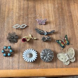 Broscher förknippas ofta med ädelstenar, guld och silver. Trenderna genom årtiondena har dock även lämnat plats för retrobroscher och färgglada plastvarianter. Broscher finns i ett närmast oändligt antal olika varianter, både trendiga och klassiska. I Traderas utbud av begagnade broscher kan man hitta broscher silver och broscher guld. I allra bästa fall finns en Chanel brosch eller två ute för auktion – en dröm för den som gillar att klä sig klassiskt stilrent. Den som vågar ta ut svängarna har ofta ännu mer att hämta. Broscher, smycken och kläder är ett intresse som delas av många. Individuella preferenser styr garderobens innehåll och dessa förändras över tid. Titta igenom utbudet av aktiva annonser så kan du upptäcka broscher som gjort sitt i en persons smyckesgarderob, men som blir huvudnumret i din. Hos Tradera har du möjlighet att hitta begagnade broscher i alla prisklasser, från slutsålda varianter från budgetkedjorna till diamantprydda varianter från välkända juvelerare.