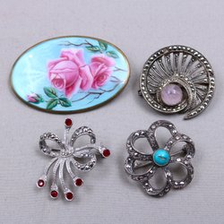Broscher förknippas ofta med ädelstenar, guld och silver. Trenderna genom årtiondena har dock även lämnat plats för retrobroscher och färgglada plastvarianter. Broscher finns i ett närmast oändligt antal olika varianter, både trendiga och klassiska. I Traderas utbud av begagnade broscher kan man hitta broscher silver och broscher guld. I allra bästa fall finns en Chanel brosch eller två ute för auktion – en dröm för den som gillar att klä sig klassiskt stilrent. Den som vågar ta ut svängarna har ofta ännu mer att hämta. Broscher, smycken och kläder är ett intresse som delas av många. Individuella preferenser styr garderobens innehåll och dessa förändras över tid. Titta igenom utbudet av aktiva annonser så kan du upptäcka broscher som gjort sitt i en persons smyckesgarderob, men som blir huvudnumret i din. Hos Tradera har du möjlighet att hitta begagnade broscher i alla prisklasser, från slutsålda varianter från budgetkedjorna till diamantprydda varianter från välkända juvelerare.