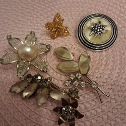Broscher förknippas ofta med ädelstenar, guld och silver. Trenderna genom årtiondena har dock även lämnat plats för retrobroscher och färgglada plastvarianter. Broscher finns i ett närmast oändligt antal olika varianter, både trendiga och klassiska. I Traderas utbud av begagnade broscher kan man hitta broscher silver och broscher guld. I allra bästa fall finns en Chanel brosch eller två ute för auktion – en dröm för den som gillar att klä sig klassiskt stilrent. Den som vågar ta ut svängarna har ofta ännu mer att hämta. Broscher, smycken och kläder är ett intresse som delas av många. Individuella preferenser styr garderobens innehåll och dessa förändras över tid. Titta igenom utbudet av aktiva annonser så kan du upptäcka broscher som gjort sitt i en persons smyckesgarderob, men som blir huvudnumret i din. Hos Tradera har du möjlighet att hitta begagnade broscher i alla prisklasser, från slutsålda varianter från budgetkedjorna till diamantprydda varianter från välkända juvelerare.
