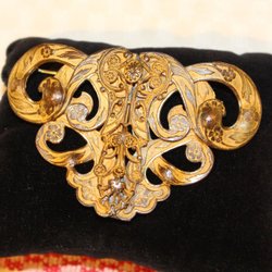 ÄLDRE BROSCH MED FJÄRIL MED VACKER DEKOR