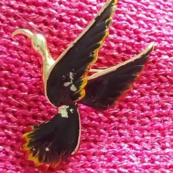 Broschen är lättplacerad. Lika snygg på klänningen som tex sjal eller mössa.