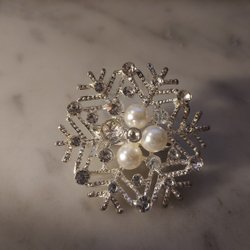 Brosch i Mässing 50/60-tal Pärlor i Pärlemor Diameter 4,7 cm
