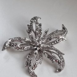 Fin brosch med kristallpärlor och strass, diameter ca 3,5 cm.