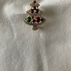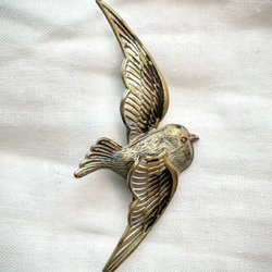 Den här broschen har små transparenta kristaller och silverfärgad metall, mått är ca 6 × 3.5 cm.