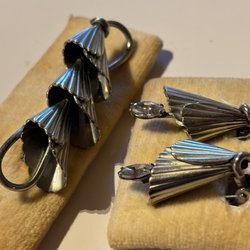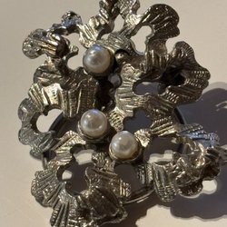 En vacker brosch med stenar - fin rosett - hittar inga stämplar men känns som silver - se bilder