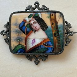 Vacker emaljbrosch med motiv av Mozart.