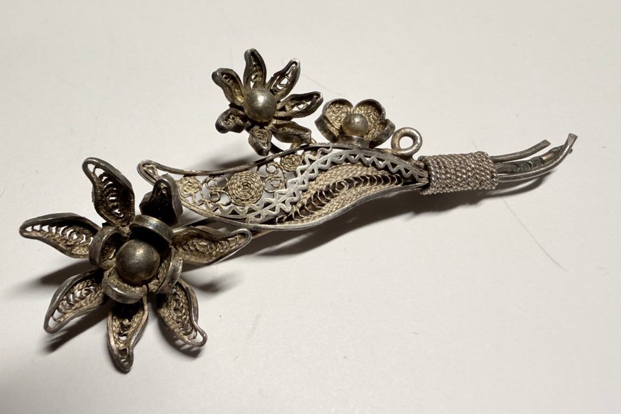 Vacker brosch filigran ev silver