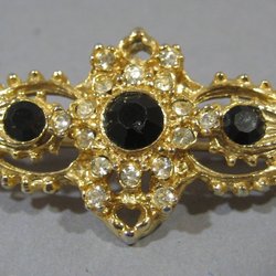 Vintage 70-tal. Guldfärgad brosch i rejäl utformning med stenar.