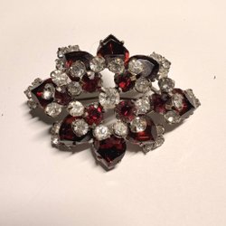 En brosch med röda stenar " rubiner " . Flera stenar saknas, se bilder.