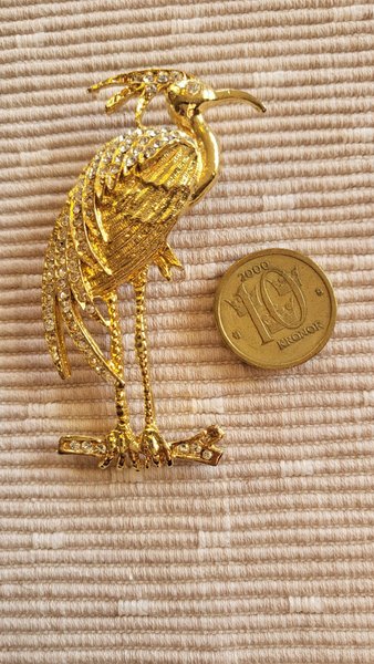 (se 10 kroners myntet för att få uppfattning om storleken på broschen)