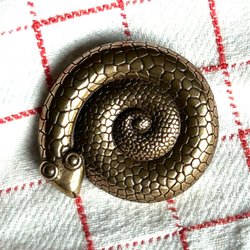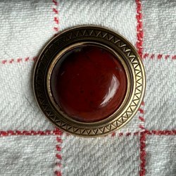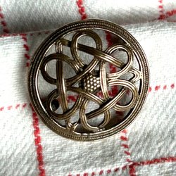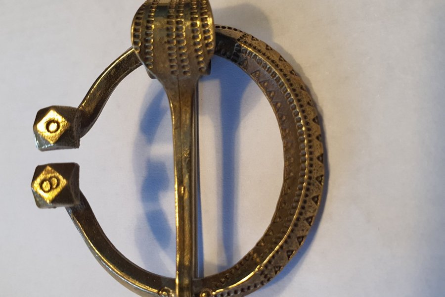 Ett spänne/brosch i mässing tror jag. En kopia på ett vikinga-/medeltidsspänne, mycket fint och billigt.