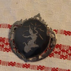 VACKER BROSCH MED STÄMPEL PÅ NÅLEN. MÅTT. 5.7X2.5 CM. GOTT SKICK.