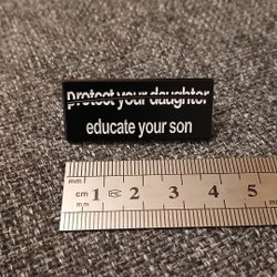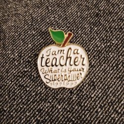 En silverfärgad brosch/pin i rostfritt stål.
