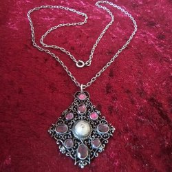 Mått; ca 46-50 cm kedja i omkrets, mätt ner i själva ringningen av halsbandet