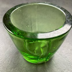 Ett vackert guldfärgat halsband med ett stort, ovalt, grönt hänge. Halsbandet har en justerbar kedja med ett litet hänge med en logotyp.