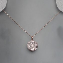 HALSBANDET HAR EN SILVERPLÄTERAD KEDJA SOM ÄR TÄT. MITT FRAM FÄSTER KEDJAN PÅ BÅDA SIDOR I ETT HÄNGE SOM ÖVERST BESTÅR AV EN CIRKEL SOM MÄTER CA 15 MM I DIAMETER. DEN ÄR EMALJERAD I TRANSPARENT ROSA/LILA OCH I MITTEN AV DE FEM SILVERBLOMMORNA SITTER EN GNISTRANDE SWAROWSKI-KRISTALL I ROSA NEDSÄNKT I METALLEN. FRÅN DENNA CIRKEL HÄNGER EN DEKORATION MED TRE SWAROWSKI-KRISTALLER I ROSA OCH LILA. DE SITTER ALLA VACKERT INFATTADE I VAR SIN SILVERSKÅL. UNDERST HÄNGER EN OVAL SOM ÄR EMALJERAD I TRANSPARENT ROSA OCH HÄR SITTER TRE GNISTRANDE ROSA SWAROWSKI-KRISTALLER NEDSÄNKTA I METALLEN. PÅ BAKSIDAN AV DEN RUNDA BERLOCKEN FINNS PILGRIM INGRAVERAT. LÄNGST UT I ENA SIDAN AV KEDJAN HÄNGER PILGRIMS LOGO-BERLOCK.